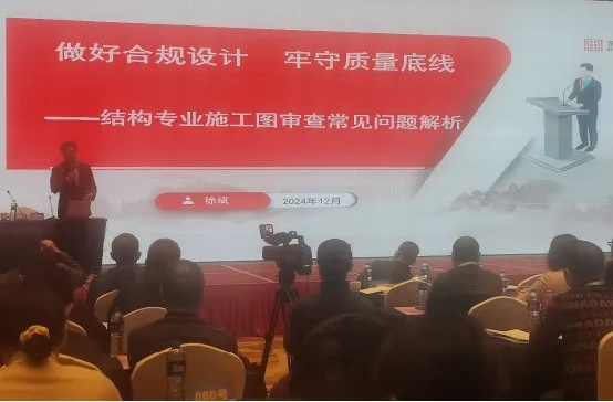 针对结构施工图审查环节,徐斌重点对“总说明及结构设计基本规定、结构计算分析、地基与基础、混凝土结构、钢结构、结构加固与改造”出现的常见问题进行了详细解析,要把握好规范标准里的“严禁、应、宜”等用词的理解和执行尺度,对违反国家相关政策、强制性条款等要勇于说“不”,当然也要注意提出的方式方法,树立“对事不对人”的宗旨。