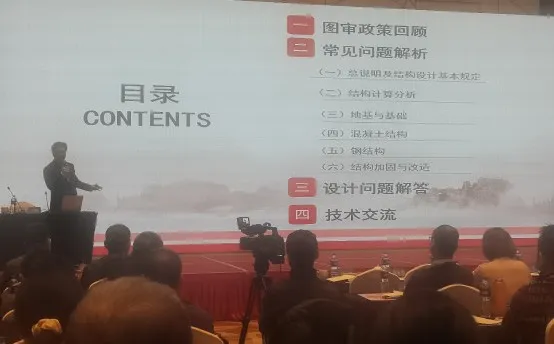 在随后的会议交流研讨环节,京审协技术工作委员会常务副主任委员、教授级高级工程师、国家一级注册结构工程师、全国工程勘察设计行业奖评审专家、兼职硕士研究生导师、中设安泰(北京)工程咨询有限公司顾问总工程师徐斌针对结构专业施工图审查中的常见问题及审查要点进行了专题讲座。