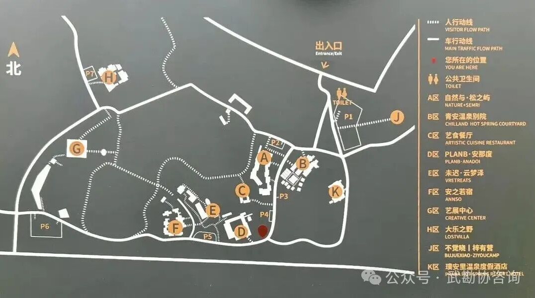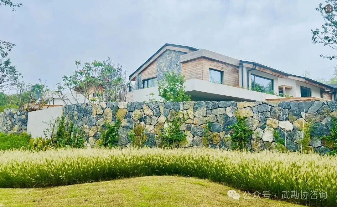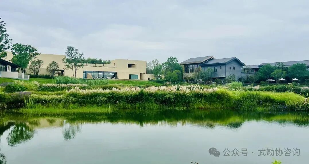 项目整体占地1500亩,原生森林绿地达到90%以上;现场目之所及,水清草绿、房屋俨然,一步一景、神怡心旷,外若桃源、内蕴华章。七组不同风格的单体建筑集群,以疏密有致、肌理融合的山林湖草协调为“自由(梓有)”乌托邦聚落,提供了多样化的旅居度假、游憩餐饮、艺术赏玩、温泉疗养、户外运动等复合功能体验。
