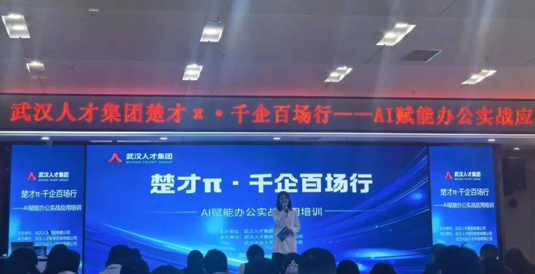 本次培训主题为“楚才π·千企百场行 ——AI 赋能办公实战应用”,通过实战授课、答疑互动,进行AI+信息收集、AI智能设计、数据处理和分析等方面的指导和交流。